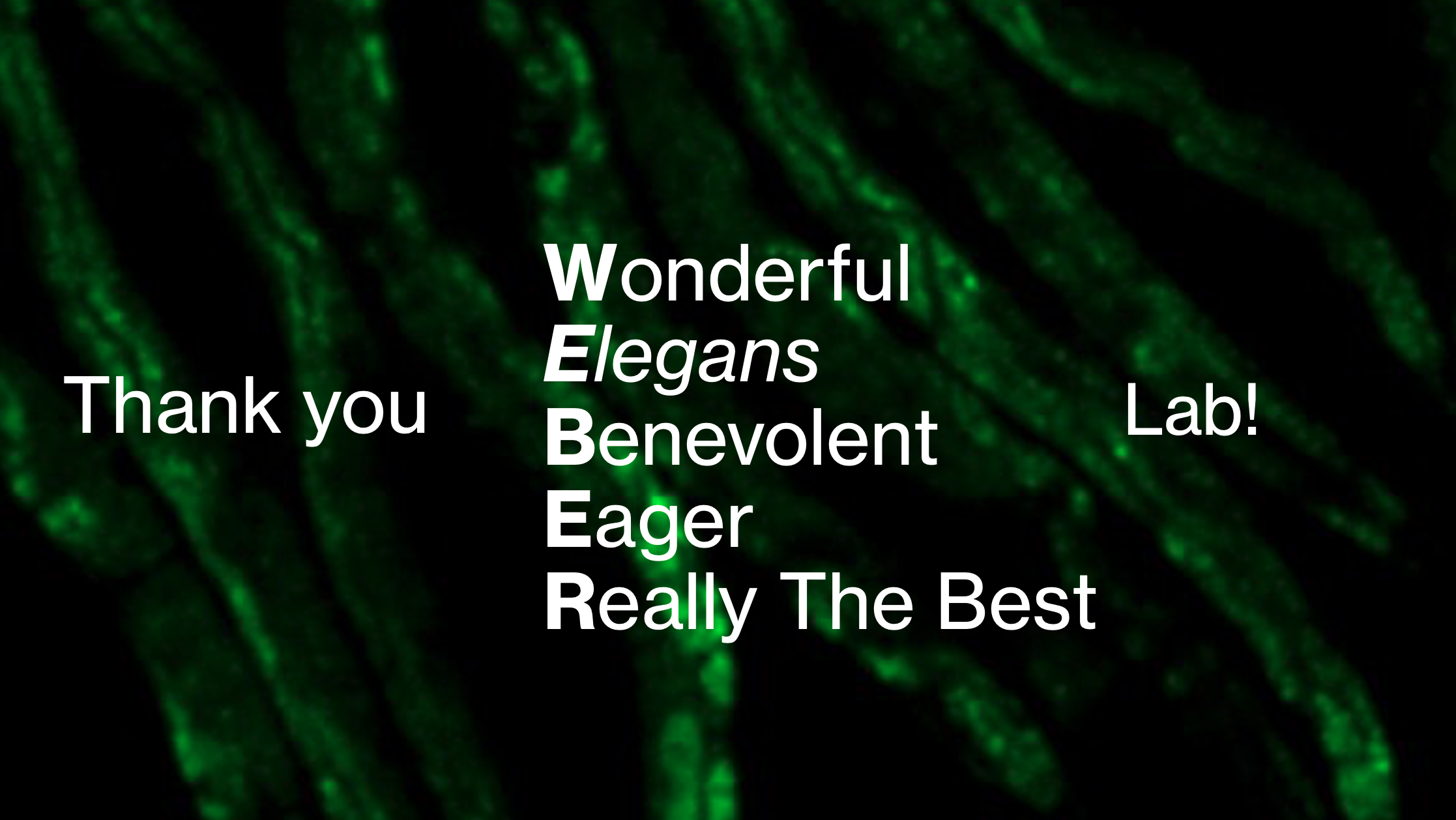 Undergraduate student Mariana Djafarian successfully completed an Independent Research Project, in which she established two new assays in the lab to monitor lipid accumulation in aging worms. Great work, and thank you! Good luck in your next adventure!